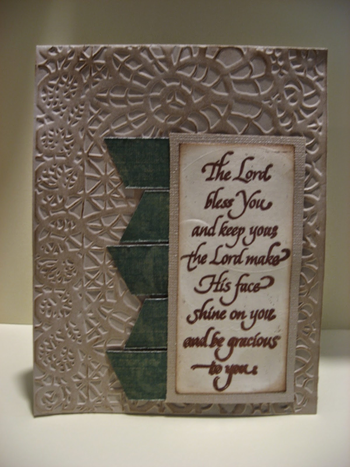 I made this card to send to a lady from our church that is in the nursing home. I kept it simple by just embossing the card and adding the scripture sentiment.